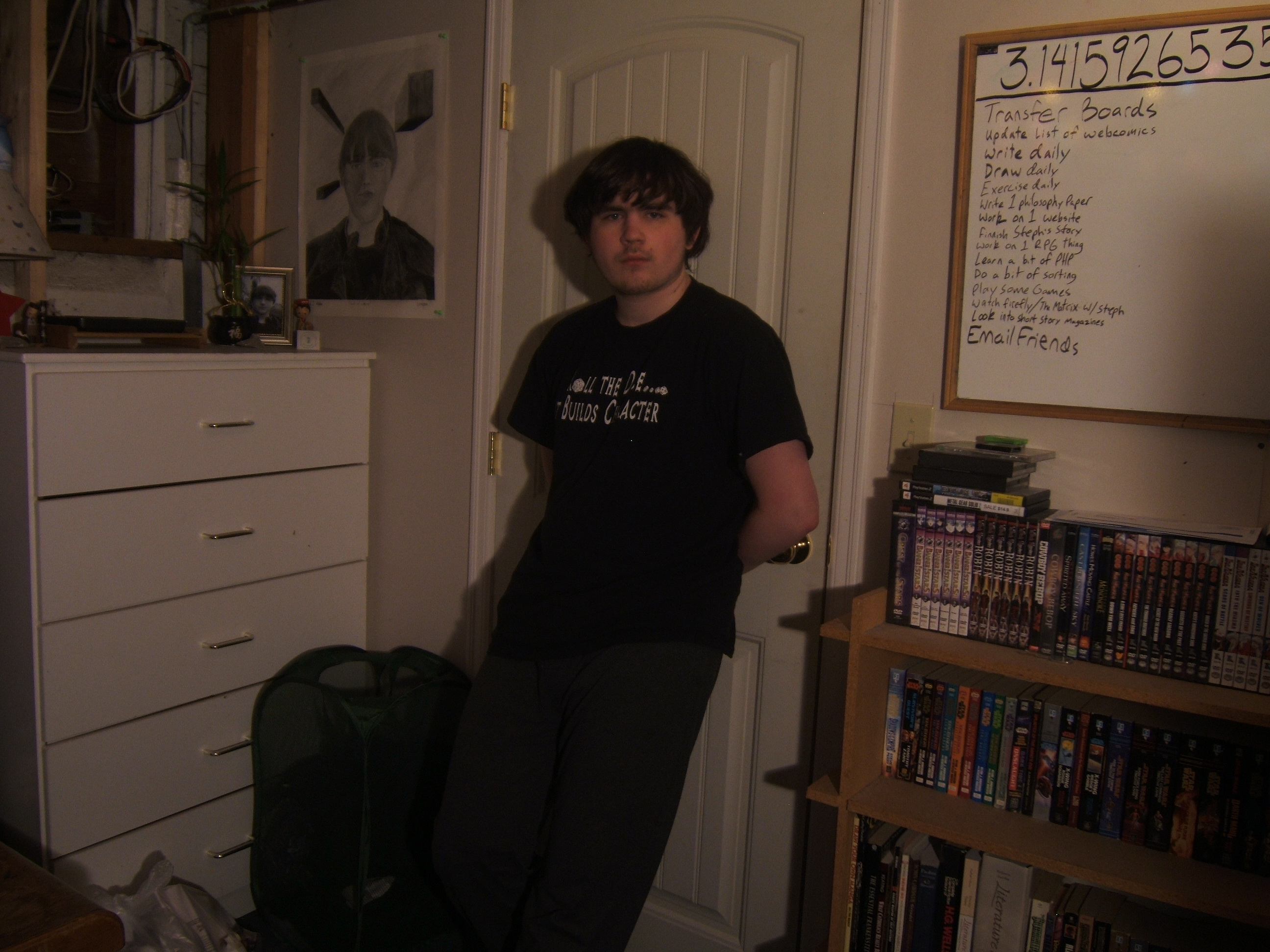 Here we go. No kid stuff this time. Teenaged Nick leaning against the door trying to look suave in pyjama pants. Laundry on one side of him, Anime and Star Wars novels on the right. So sexy.